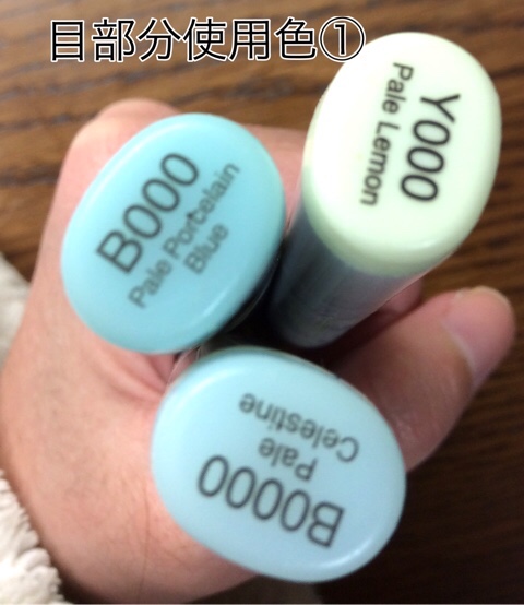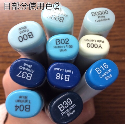 目は繊細な部分なので3段階にわけて塗っていきます。第一段階で使った色はこちら。