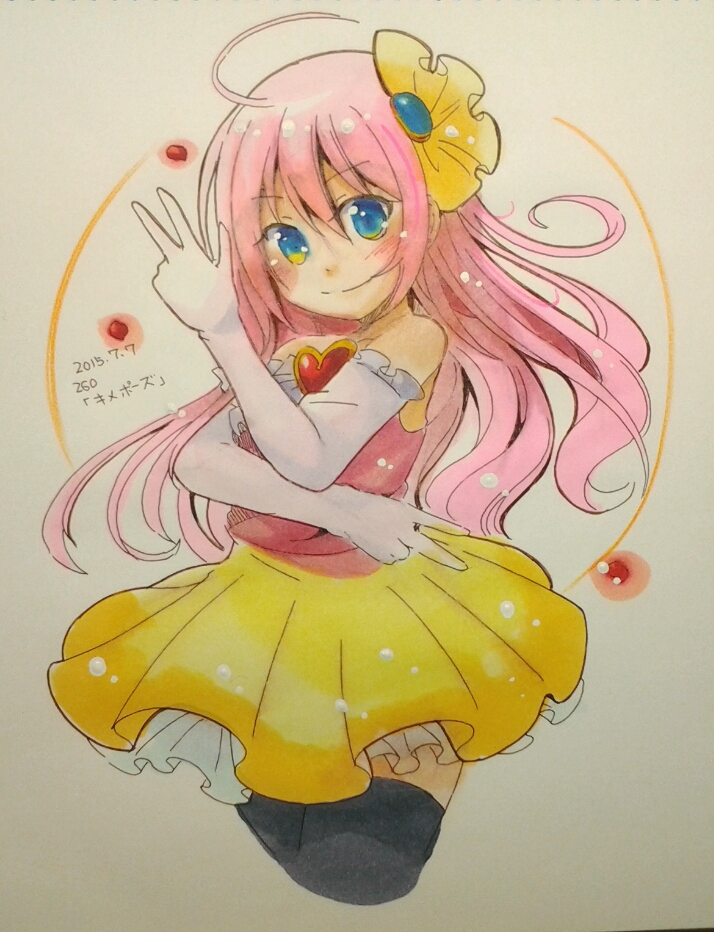 いろいろキメポーズを悩んだ結果、セーラー○ーンとプリ○ュアを足して二で割ったようなキャラクターが出来上がりました(^-^;