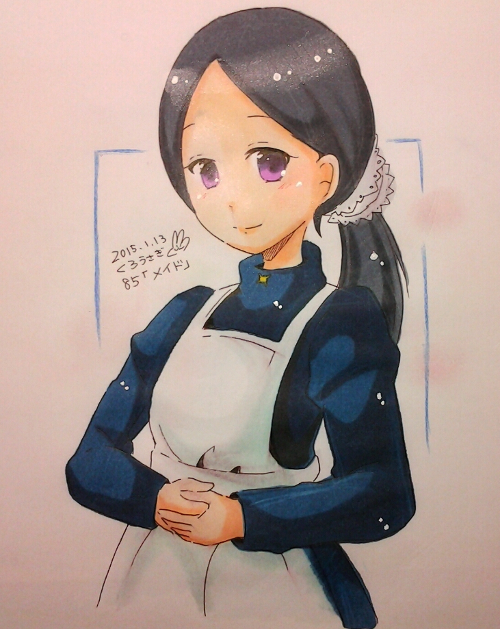 ふりっふりのメイドさんと迷ったのですが、あんまり描いたことがない落ちついたお手伝いさん風にしました。