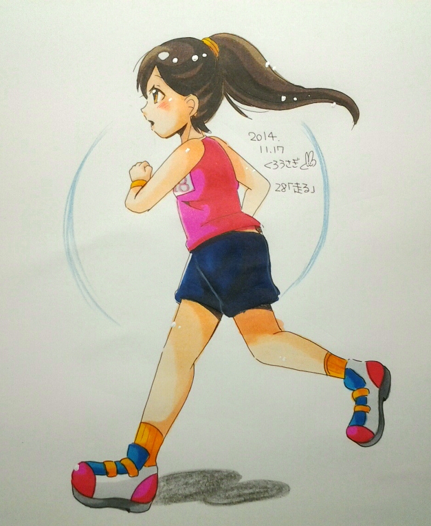 朝にペン入れし終わってから、手と足が同時に出ているのに気がついて書き直しました(^-^;